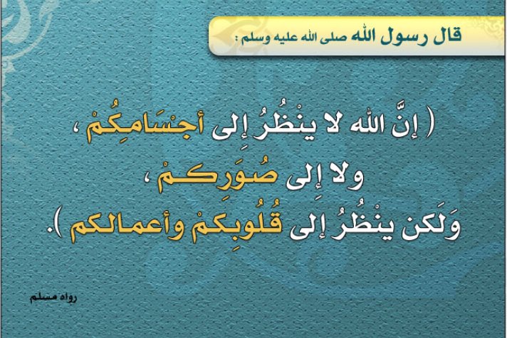 ان الله لا ينظر الى صوركم واموالكم ولكن ينظر الى قلوبكم واعمالكم