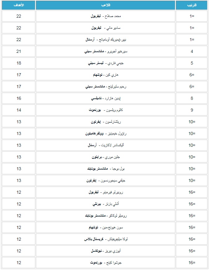 ترتيب هدافي الدوري الانجليزي 2019 طنطا اليوم