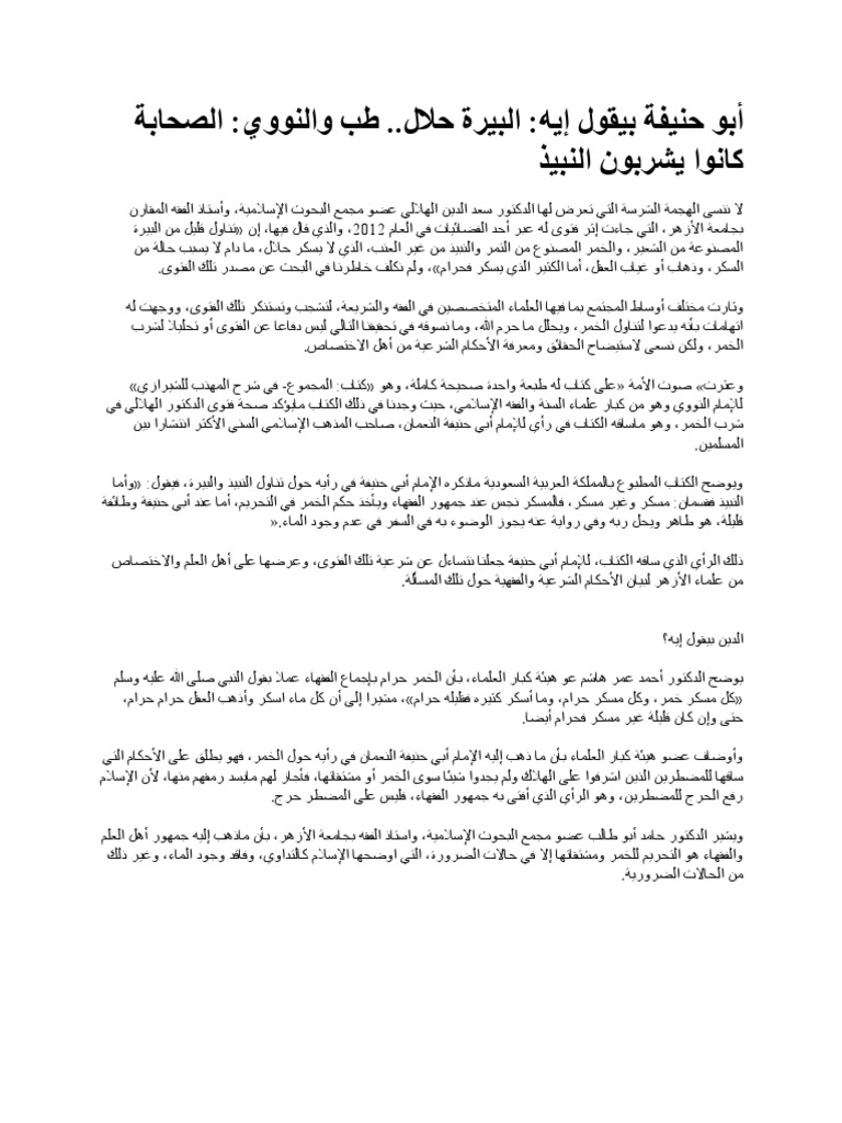 أبو حنيفة بيقول إيه البيرة حلال طب والنووي الصحابة كانوا