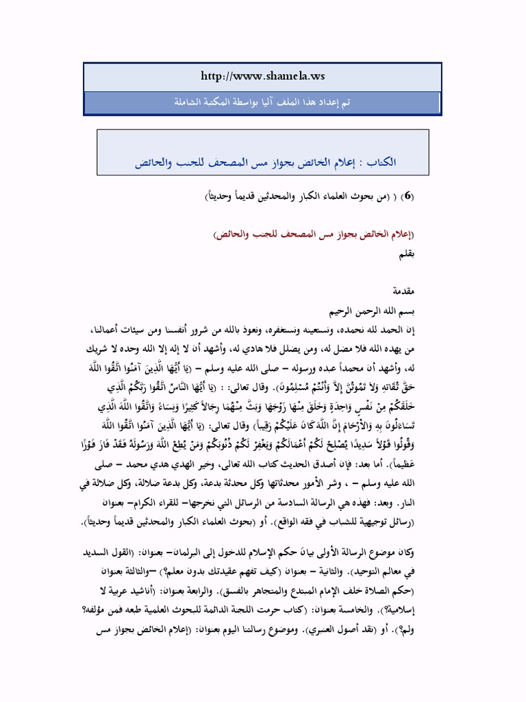 هل يجوز مس المصحف للمحدث موقع عربي أمريكي
